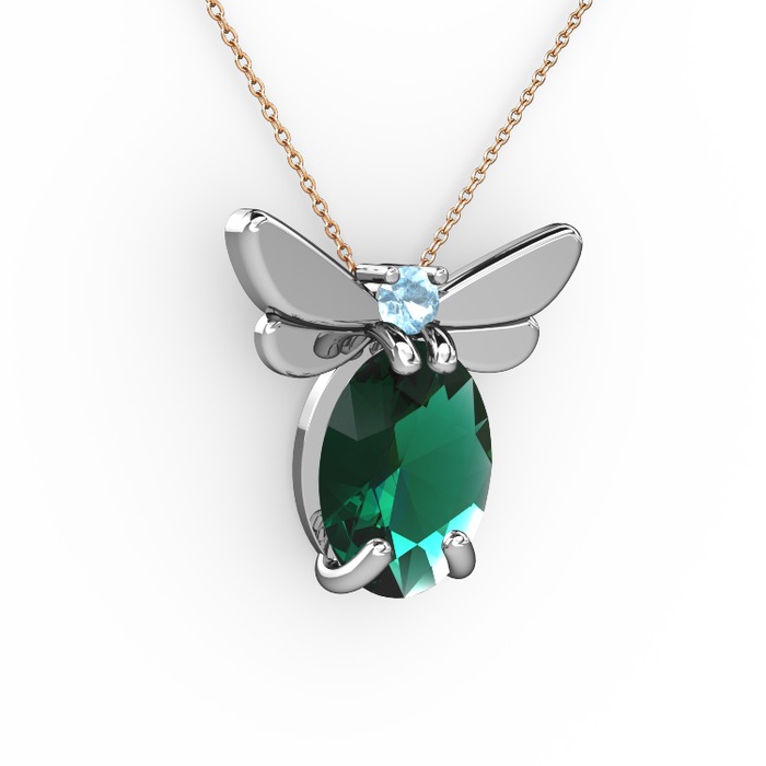 Yeşil kuvars ve akuamarin 8 ayar beyaz altın kolye (40 cm rose altın rolo zincir)