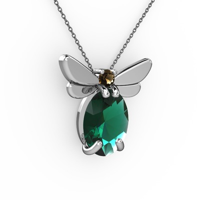Yeşil kuvars ve dumanlı kuvars 18 ayar beyaz altın kolye (40 cm gümüş rolo zincir)