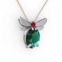 Yeşil kuvars ve garnet 14 ayar beyaz altın kolye (40 cm gümüş rolo zincir)