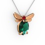 Yeşil kuvars ve garnet 14 ayar rose altın kolye (40 cm beyaz altın rolo zincir)