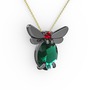 Yeşil kuvars ve garnet 925 ayar siyah rodyum kaplama gümüş kolye (40 cm altın rolo zincir)