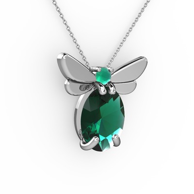 Yeşil kuvars ve kök zümrüt 925 ayar gümüş kolye (40 cm gümüş rolo zincir)