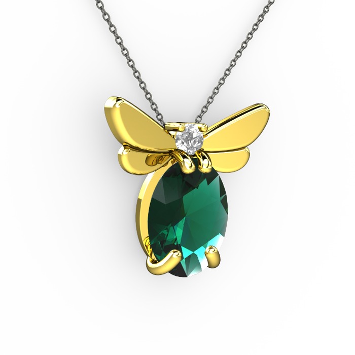 Yeşil kuvars ve pırlanta 8 ayar altın kolye (0.24 karat, 40 cm gümüş rolo zincir)