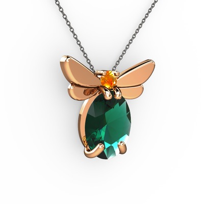 Yeşil kuvars ve sitrin 14 ayar rose altın kolye (40 cm gümüş rolo zincir)
