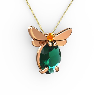 Yeşil kuvars ve sitrin 8 ayar rose altın kolye (40 cm gümüş rolo zincir)