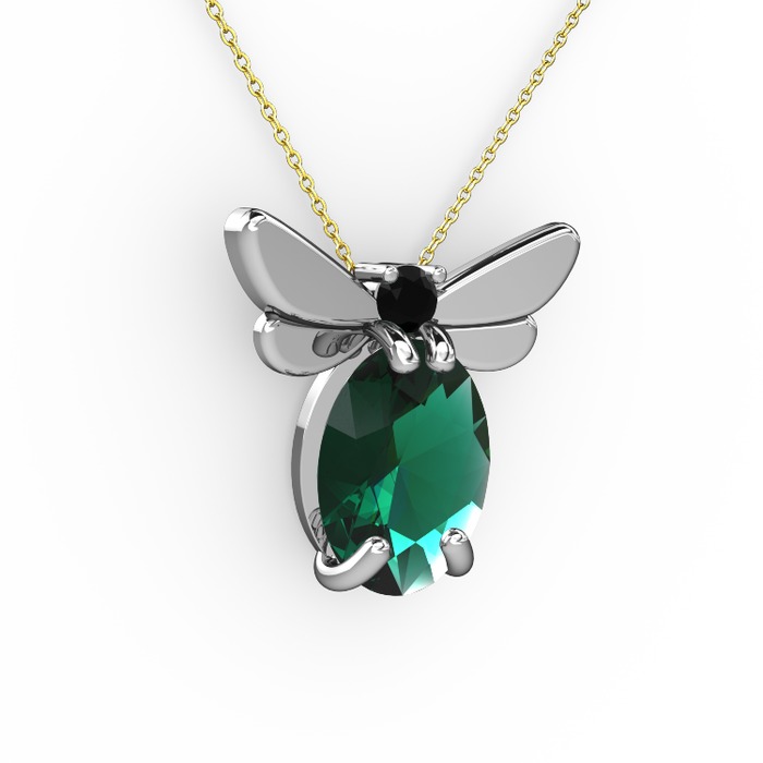 Yeşil kuvars ve siyah zirkon 18 ayar beyaz altın kolye (40 cm altın rolo zincir)