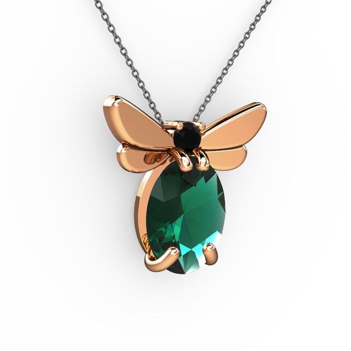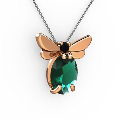 Yeşil kuvars ve siyah zirkon 8 ayar rose altın kolye (40 cm gümüş rolo zincir)