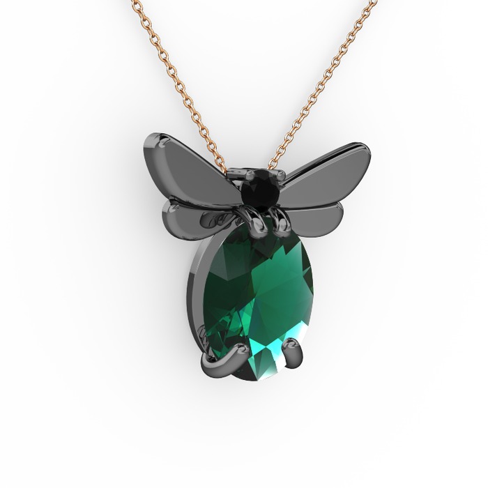 Yeşil kuvars ve siyah zirkon 925 ayar siyah rodyum kaplama gümüş kolye (40 cm rose altın rolo zincir)