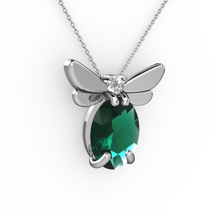 Yeşil kuvars ve swarovski 8 ayar beyaz altın kolye (40 cm beyaz altın rolo zincir)