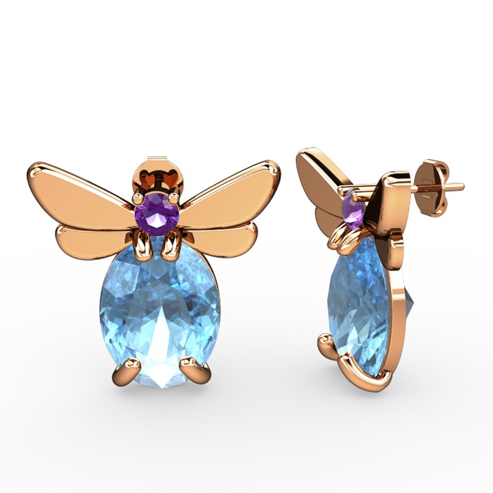 Akuamarin ve ametist 18 ayar rose altın küpe