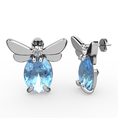 Akuamarin ve beyaz zirkon 18 ayar beyaz altın küpe