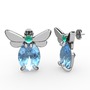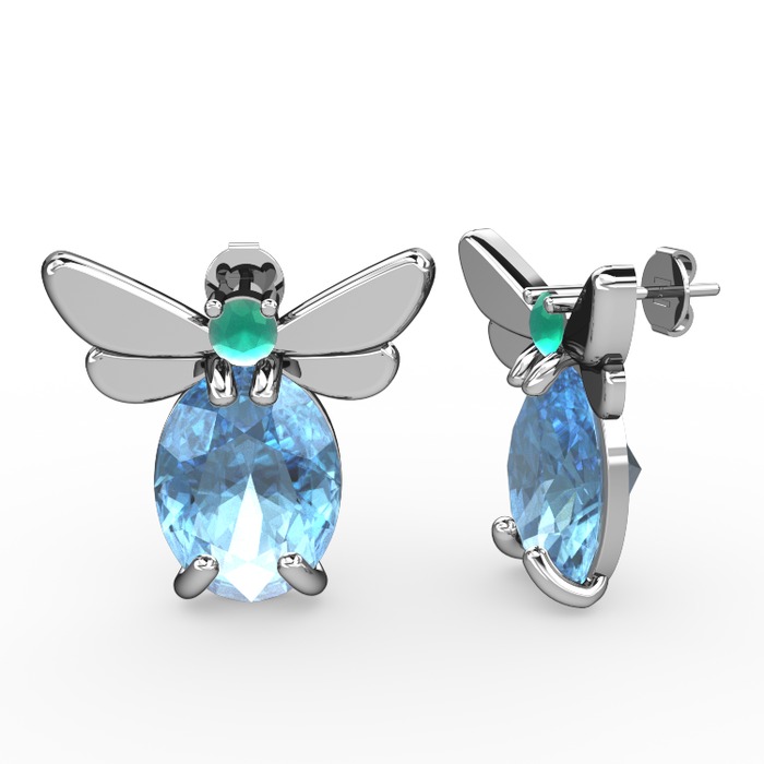 Akuamarin ve kök zümrüt 18 ayar beyaz altın küpe