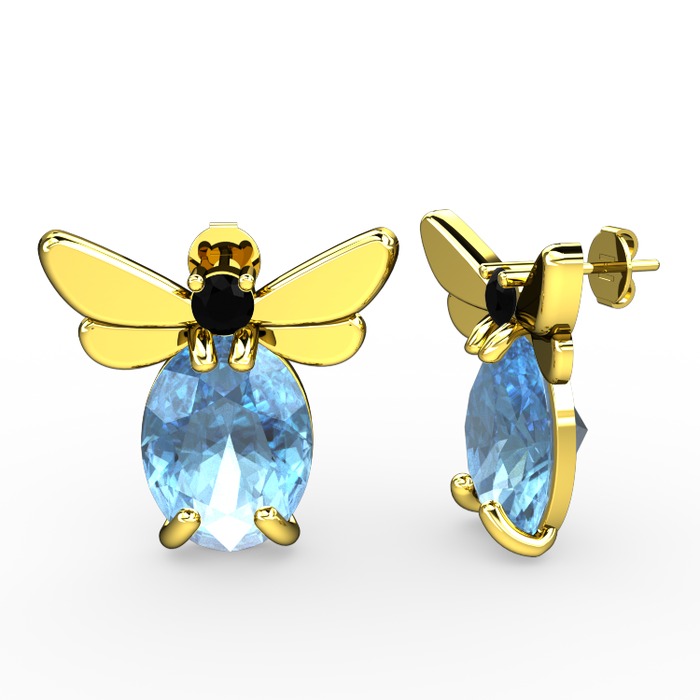 Akuamarin ve siyah zirkon 18 ayar altın küpe
