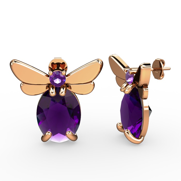 Ametist 18 ayar rose altın küpe