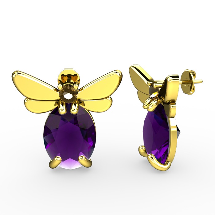 Ametist ve dumanlı kuvars 18 ayar altın küpe