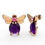 Ametist ve pembe kuvars 925 ayar rose altın kaplama gümüş küpe