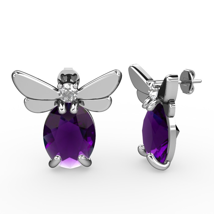 Ametist ve pırlanta 18 ayar beyaz altın küpe (0.22 karat)
