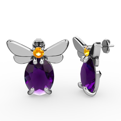 Ametist ve sitrin 925 ayar gümüş küpe