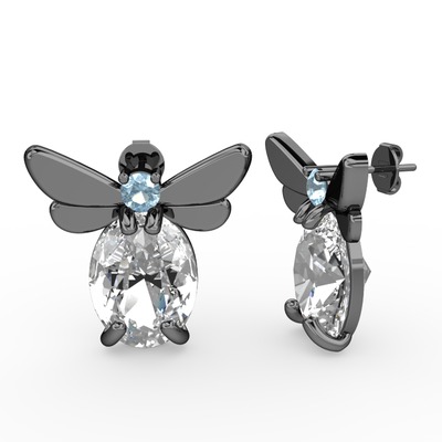 Beyaz zirkon ve akuamarin 925 ayar siyah rodyum kaplama gümüş küpe