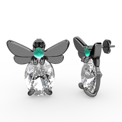 Beyaz zirkon ve kök zümrüt 925 ayar siyah rodyum kaplama gümüş küpe