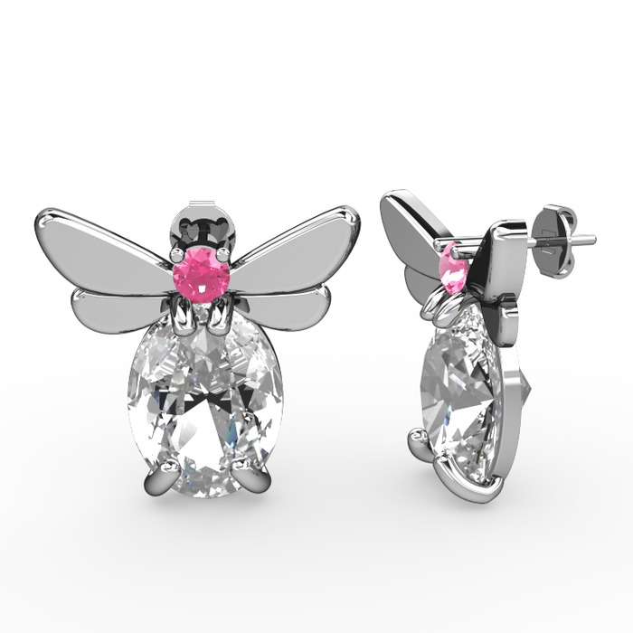 Beyaz zirkon ve pembe kuvars 18 ayar beyaz altın küpe