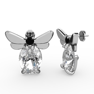 Beyaz zirkon ve siyah zirkon 925 ayar gümüş küpe