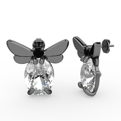 Beyaz zirkon ve siyah zirkon 925 ayar siyah rodyum kaplama gümüş küpe