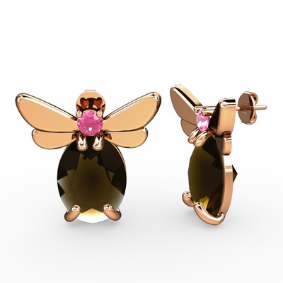 Dumanlı kuvars ve pembe kuvars 8 ayar rose altın küpe