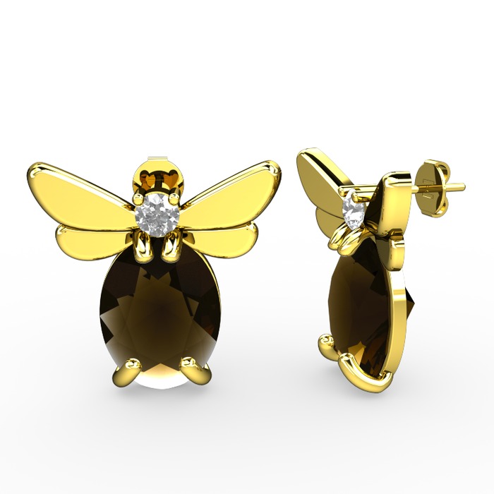 Dumanlı kuvars ve pırlanta 8 ayar altın küpe (0.22 karat)