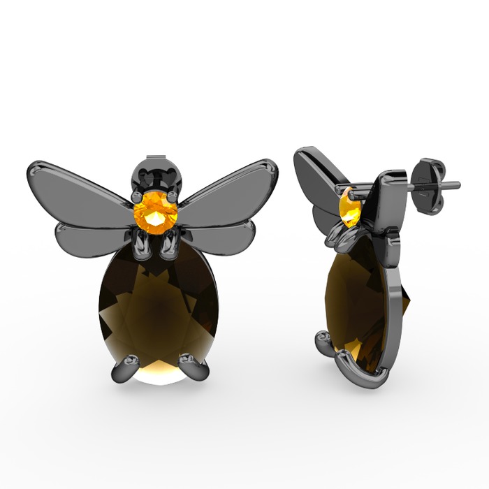 Dumanlı kuvars ve sitrin 925 ayar siyah rodyum kaplama gümüş küpe