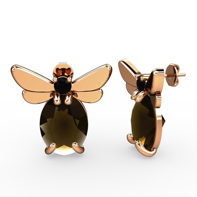 Dumanlı kuvars ve siyah zirkon 925 ayar rose altın kaplama gümüş küpe