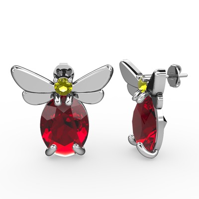 Garnet ve peridot 8 ayar beyaz altın küpe