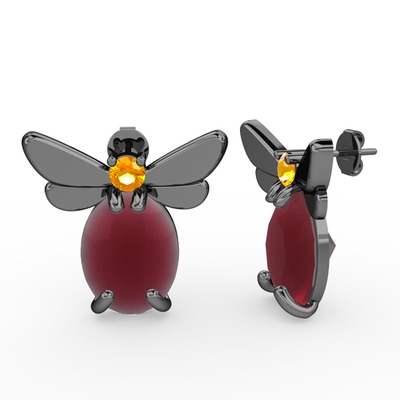 Kök yakut ve sitrin 925 ayar siyah rodyum kaplama gümüş küpe