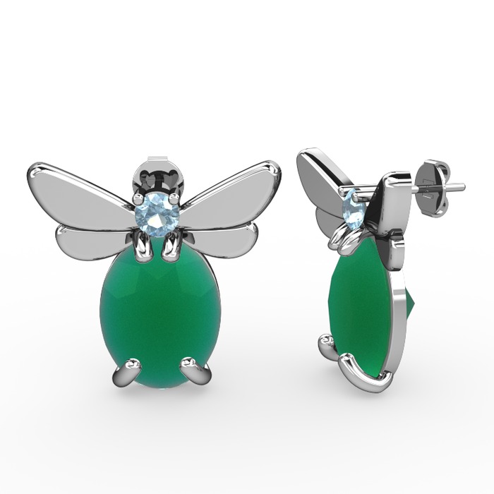 Kök zümrüt ve akuamarin 18 ayar beyaz altın küpe