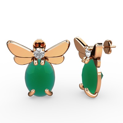 Kök zümrüt ve beyaz zirkon 14 ayar rose altın küpe