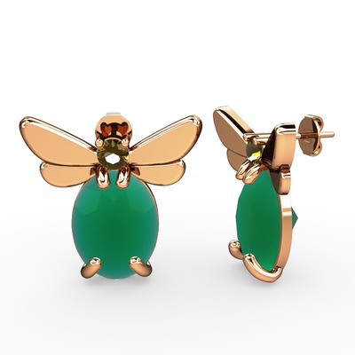 Kök zümrüt ve dumanlı kuvars 925 ayar rose altın kaplama gümüş küpe
