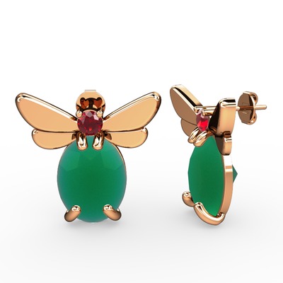 Kök zümrüt ve garnet 14 ayar rose altın küpe