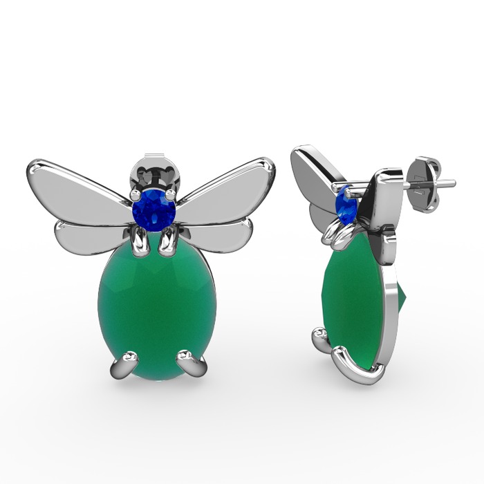 Kök zümrüt ve lab safir 14 ayar beyaz altın küpe