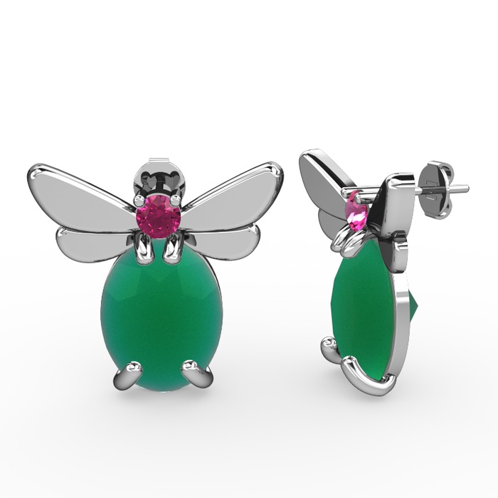 Kök zümrüt ve rodolit garnet 18 ayar beyaz altın küpe