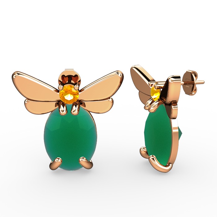 Kök zümrüt ve sitrin 8 ayar rose altın küpe