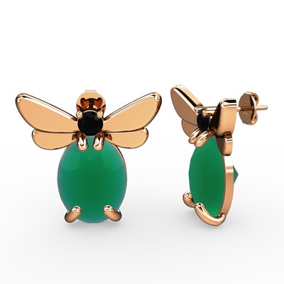 Kök zümrüt ve siyah zirkon 14 ayar rose altın küpe