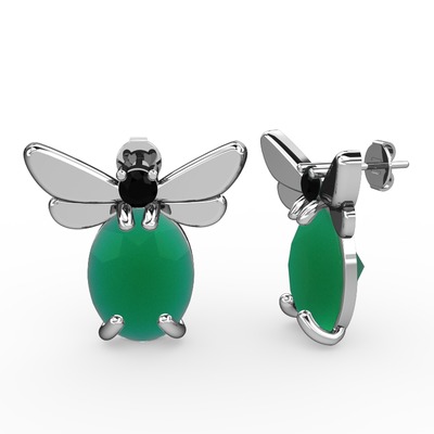 Kök zümrüt ve siyah zirkon 18 ayar beyaz altın küpe