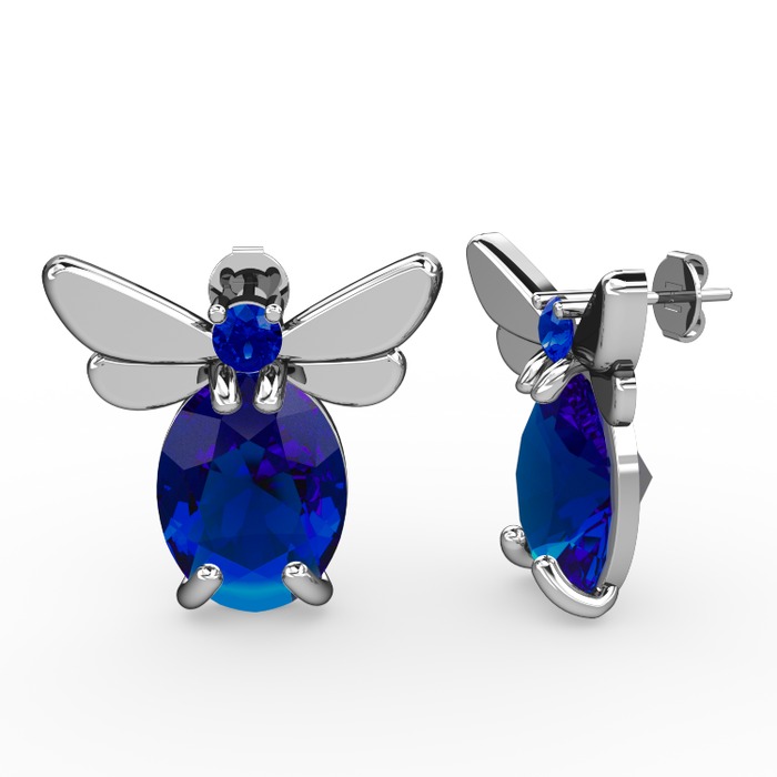 Lab safir 8 ayar beyaz altın küpe