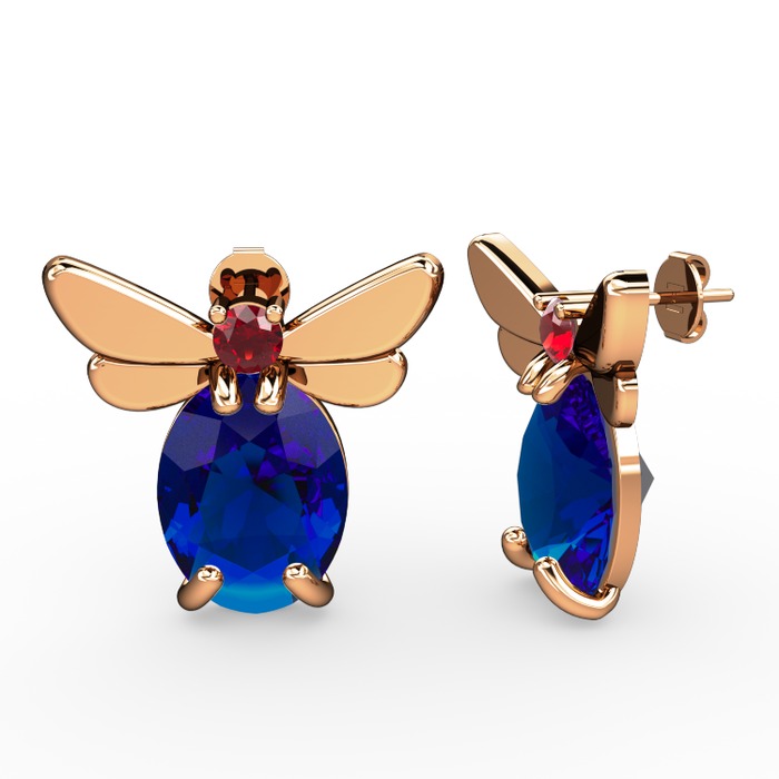 Lab safir ve garnet 14 ayar rose altın küpe