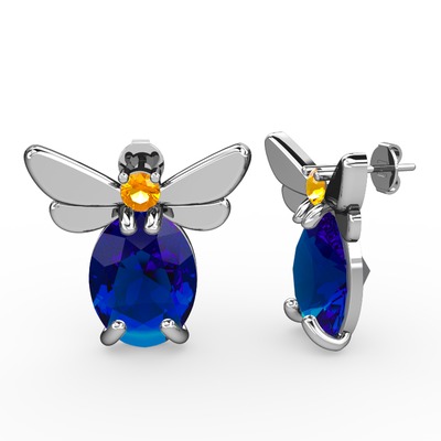 Lab safir ve sitrin 14 ayar beyaz altın küpe