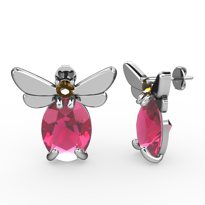 Pembe kuvars ve dumanlı kuvars 14 ayar beyaz altın küpe