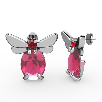 Pembe kuvars ve garnet 925 ayar gümüş küpe