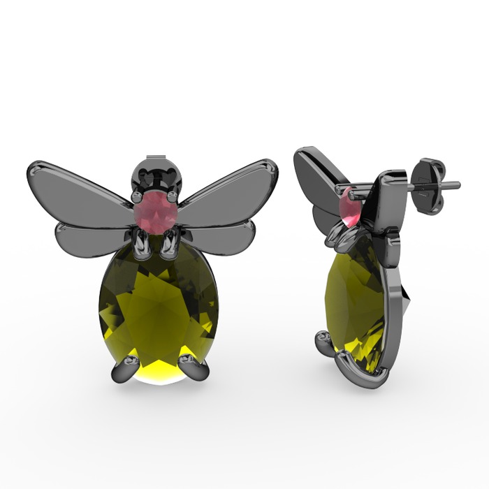 Peridot ve kök yakut 925 ayar siyah rodyum kaplama gümüş küpe