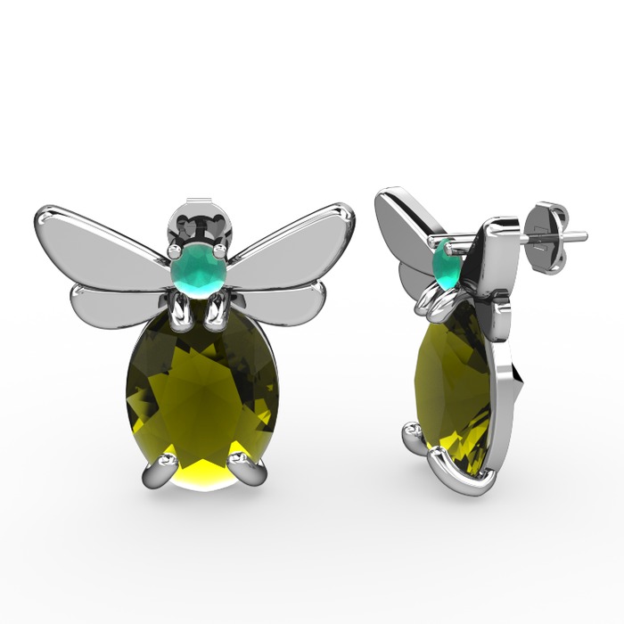 Peridot ve kök zümrüt 14 ayar beyaz altın küpe