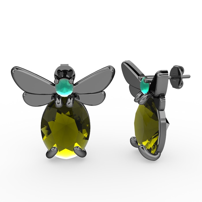 Peridot ve kök zümrüt 925 ayar siyah rodyum kaplama gümüş küpe